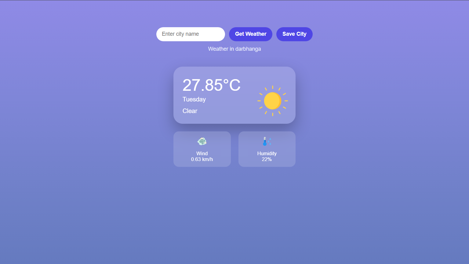 A responsive weather application built using JavaScript that integrates a public API to retrieve and display live temperature, humidity, and weather conditions based on user input.